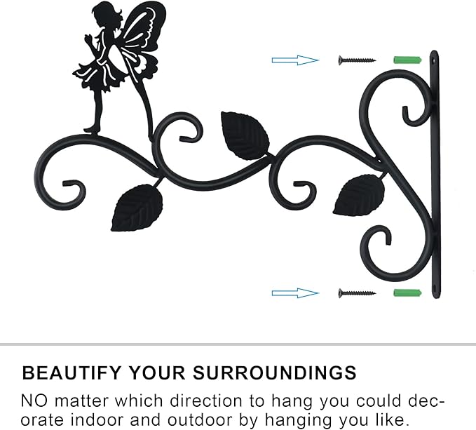 - UNIQUE APPEARANC: Hand forged wrought iron metal hangers brackets with 3D angel design offer a charming, attractive natural look. A dark finish stunningly complements anything that hangs from it, adding elegance and beauty to your home or garden. Curved hooks hold your hanging items securely in the strong wind. Decorate your indoor and outdoor living space