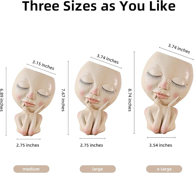 AIMEBBY Resin Head Face Planter Flower Pot for Indoor and Outdoor Plants with Drainage Hole (Large Size)…