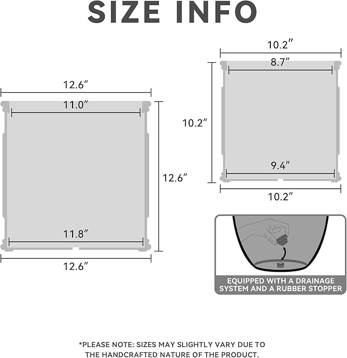 - Drainage System - Our planter pot boast drainage holes for optimal water control, each furnished with a rubber plug for indoor or outdoor adaptability. Simplify your gardening routine with easy maintenance, ensuring a healthy environment for your plants.