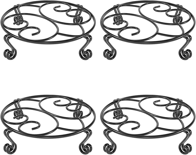 Yimobra Metal Plant Stand for Flower Pot 4 Pack Heavy Duty Potted Holder Indoor Outdoor Rustproof Iron Garden Container Round Supports Rack for Planter (4PC Black 10.24 x 2.36 IN)