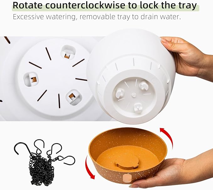 - SNAP-IN TRAY & WATER STORAGE: Snap-in tray is convenient to clean hanging plant pot. Hanging pots can overflow excess water from the edge, and the tray will store 7-14 days water for plants