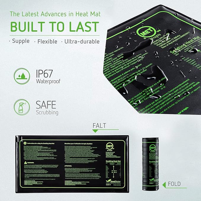 MET Certified 4 Pack Seedling Heat Mat, Seedfactor Waterproof Durable Germination Station Heat Mat, Warm Hydroponic Heating Pad for Indoor Home Gardening Seed Starter