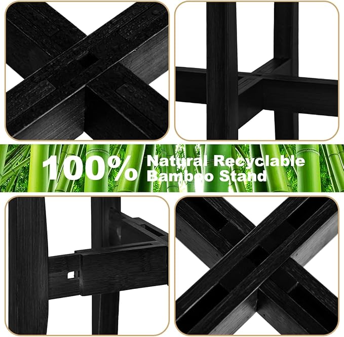 - 【100% Bamboo】 Made of renewable bamboo as raw material, with 2 layers of odorless and environmentally friendly varnish in the surface, which makes the plant stand waterproof, easier to clean and without burrs. Compared with other wood, bamboo stand will not crack and crumble. Instead of other on the market,the thickened thickness and 38cm height of the stand legsmakes the stand more sturdy and will not tip over easily. It can ensure that your lovely plants safe and attractive display.