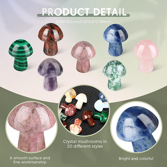 - Portable Size: each handmade crystal mushroom measures approx. 1.5 x 2.5 cm/ 0.59 x 0.98 inch, small and adorable, which allows you to hold with your hands or keep in your pocket, convenient to carry; You can get attractive crystal ornaments for very little space