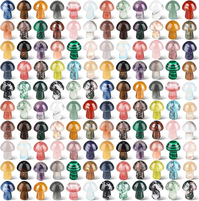 - You Will Get: 120 pieces crystal mushroom sculpture, which have different style and colors; Sufficient quantity and various colors can meet your decorative or playing needs; You can also use these gemstone mushrooms for garden lawn home plant pot decoration; Note: the style is random