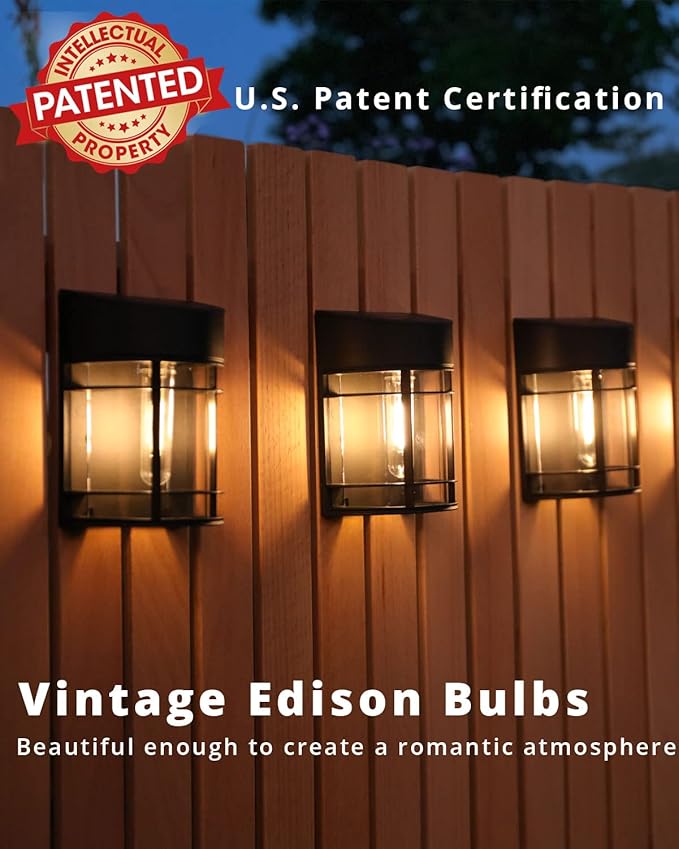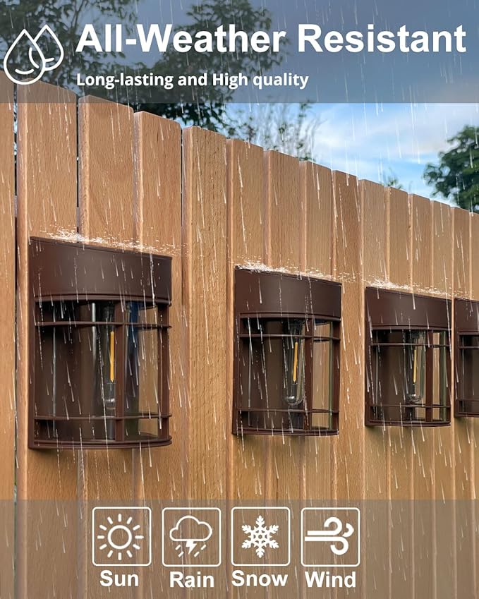 - Vintage Brown Fence lights - Give off beautiful Warm, and soft lighting, makes your garden look nicer, cozier, and more inviting. Energy-saving, No Heat and long lifespan means no bulbs to replace. (3000K warm white light). Design with U.S. Patent Certification
