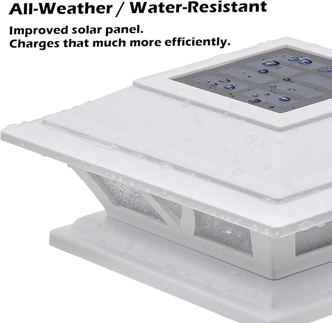 - 【IP44 Waterproof】Solar fence post light has an IP44 waterproof rating and is made of tough ABS. It will withstand harsh heat, heavy downpour, and snow. You can rest assure to use, in any outdoor environments.