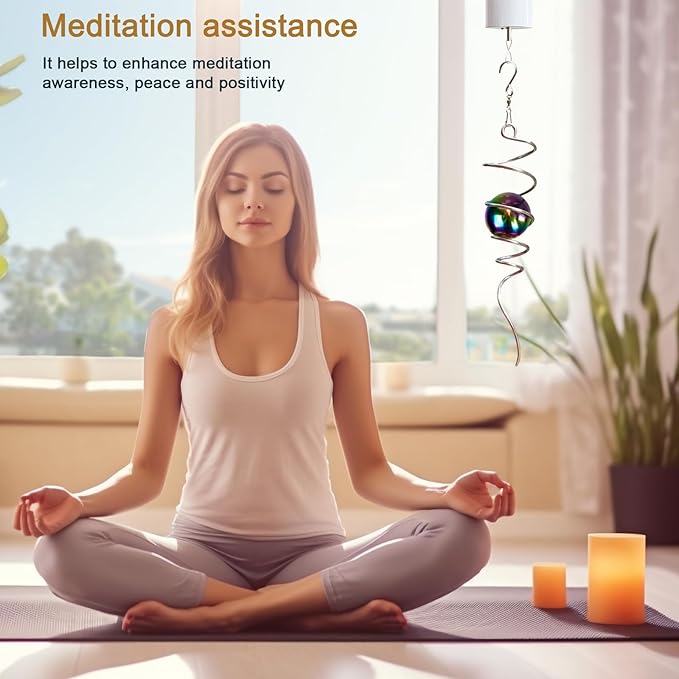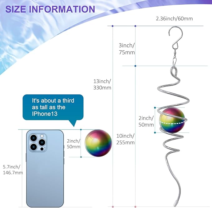 - 【 Enjoy Magic Visual Illusion 】This beautifully clever yet simple gazing ball spiral tail is designed to create a stunning optical illusion. The stainless steel ball appears to float and dance in the air as the magic ball spiral tail spins, creating a magical visual illusion that has a calming and relaxing effect on the mind. The Spiral Tail Wind Spinners can reduce anxiety and improve mental focus, making it perfect for creating a relaxing atmosphere in your home, garden or yard.