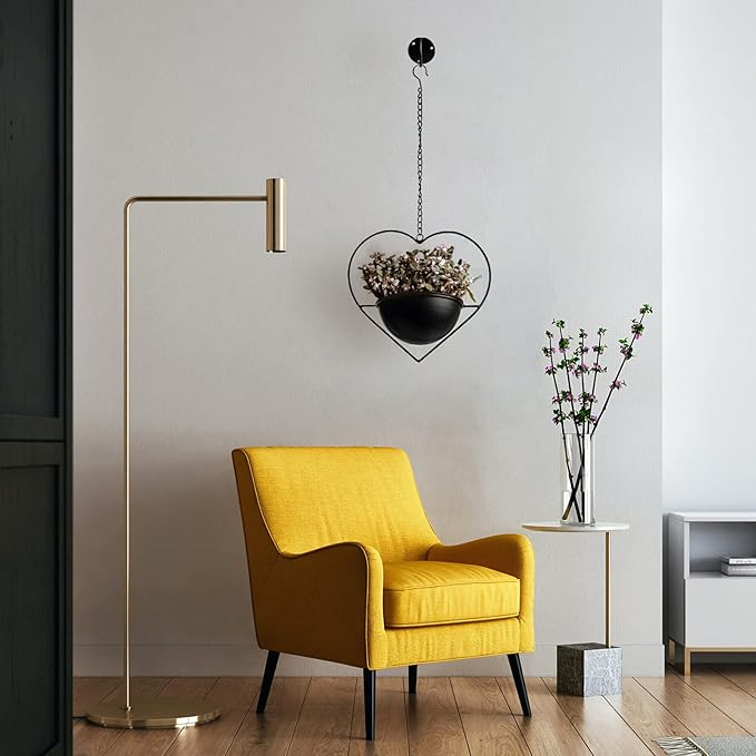 Hajia 1 Pack Heart Shaped Boho Hanging Plant Holder with 6inch Detachable Pot, Black Metal Wall Ceiling Plant Hanger for Indoor Outdoor, Minimalist Small Hanging Planter for Home Wedding Decor