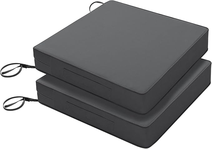 Favoyard Patio Chair Cushions 19 x 19 x 3 Inch Waterproof Outdoor Seat Cushions for Patio Furniture 3-Year Color Fastness Garden Sofa Couch Pads with Handle & Adjustable Straps Set of 2, Dark Grey