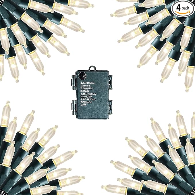 Dazzle Bright 4 Pack Warm White Christmas Mini String Lights, Total 200LED 64FT Batter Operated Waterproof Fairy Lights with 8 Modes for Xmas Indoor Outdoor Yard Garden Holiday Wedding Decorations