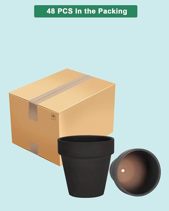 vensovo 48 Pcs Tiny Terracotta Pots - 2 inch Black Small Mini Clay Pots with Drainage Holes Flower Nursery Terra Cotta Pots for Indoor/Outdoor Succulent Plants, Crafts, Wedding Favor
