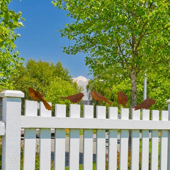 5PCS Metal Bird Silhouette with Rusty, Rusty Birds Decoration, Metal Birds Statues, Lifelike Patina Metal Birds Garden Ornaments Silhouette