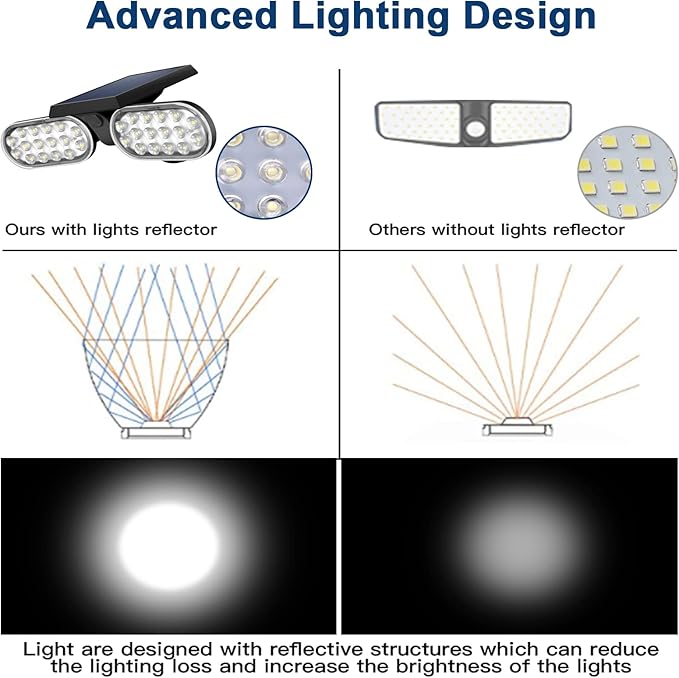 - << Double Heads 210° Adjustable >> Double heads design of our solar Spot Lights, the lighting area is larger, 210°adjustable no wires to run multicolored solar spotlight, Zero electricity bill.