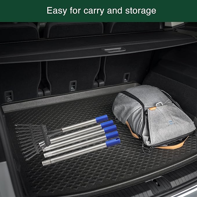 - This metal rake is easy to clean by water and detachable to carry in small car or bags for camping outdoor.