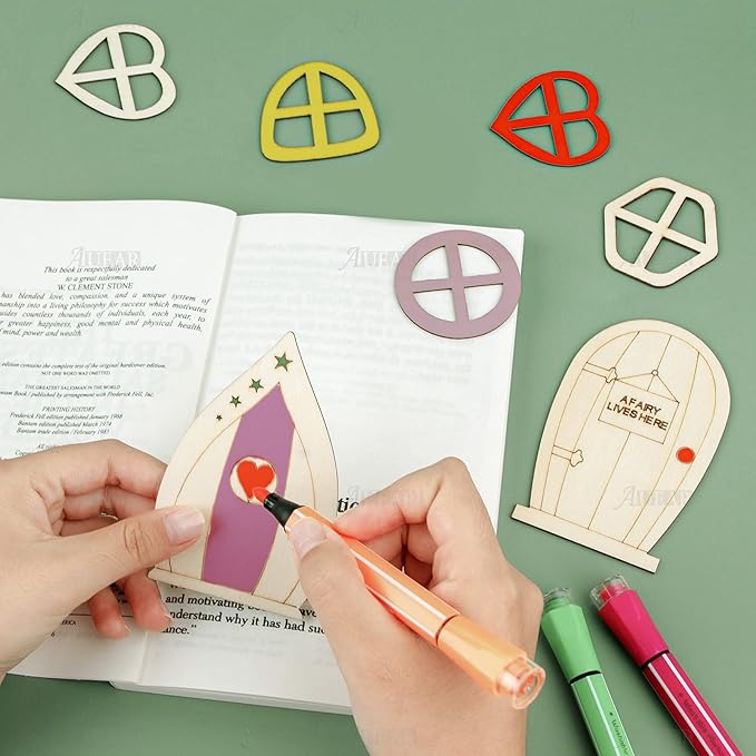 - (Material) These Unfinished Mini Fairy Doors Are Made of Wood Material