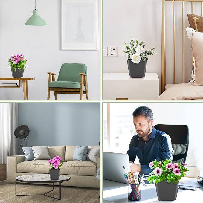 - 5.2 inch Square Plastic self watering Flower Planters the outer pot is used to store water while the inner pot is used to place plants and soil. The special water inlet can keep the surface of the soil dry all the time. It won’t rot the soil to create odor and attract insects.