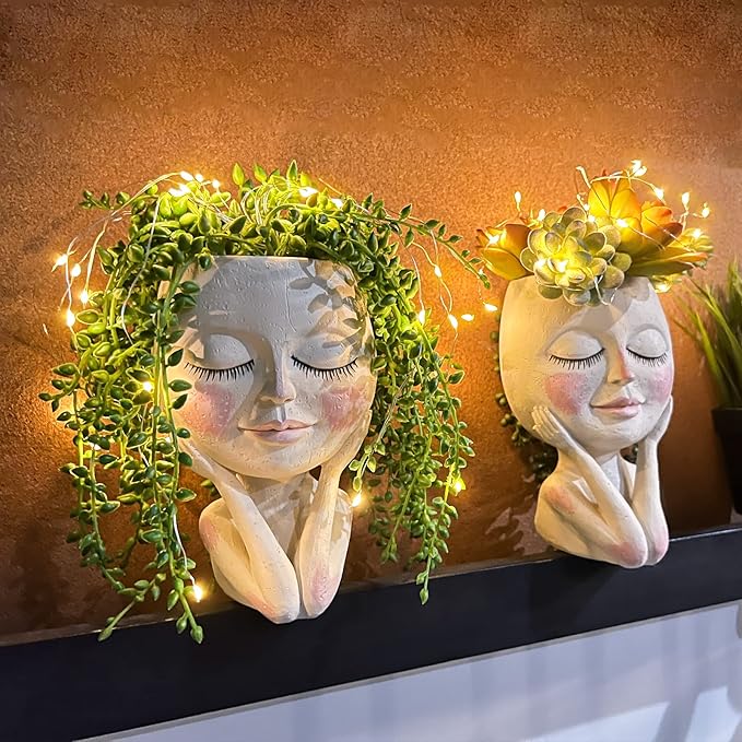 - 🌼【Indoor Outdoor Perfect Gift】A pot suitable for growing succulents, herbs, cacti or other small plants or flowers. You can also place dried or artificial flowers. It can be placed in the yard, on the windowsill, or in the living room and bedroom, suitable for both outdoor and indoor. head planters are perfect for any home decor. Buy or gift for yourself, a gift for many occasions, plant lovers, birthdays, Christmas, newlyweds, housewarming, gardeners, etc.