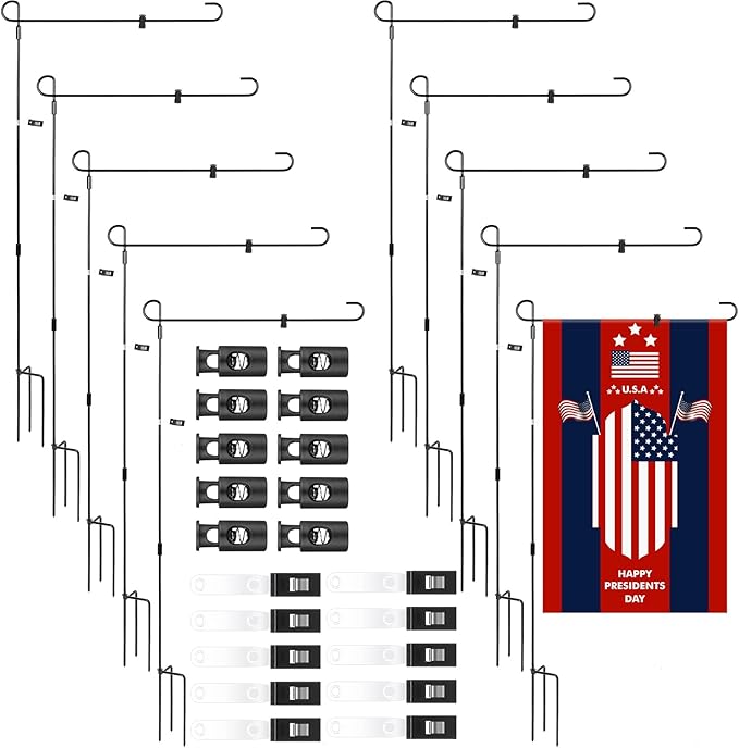 - Package Include: 10 pcs garden flag holders bulk which you can assemble into a complete flag stand, 10 pcs tiger clips, 10 pcs spring stoppers, 1 piece assembly instruction; This garden flag stand bulk came with a complete transparent sealed thick plastic bag packaging, please check whether the package is complete after receiving the package