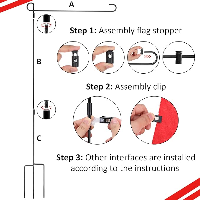 - Easy to Assemble: this Thanksgiving metal garden stand for flag is easy to assemble, 3 pieces poles are easy to assemble a complete flag stand by tighten; The top pole and the bottom pole in the middle; Well made thread sand reinforced joints will increase the garden flag stand stability and durability
