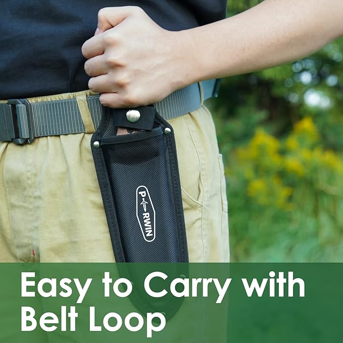 - Protect Sheath: A protective sheath with a belt loop protects the knife and can also be hung on your belt for easy use. The top of the handle has a hanging hole so that you can hang it in your garage or tool room for easy storage.