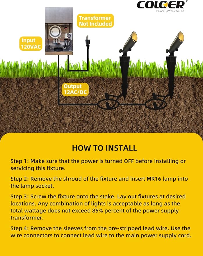 - Lifetime Warranty: The COLOER mini landscape spotlight uses a design with separate light fixture and bulb, which offers a longer lifespan compared to the non-detachable integrated design.You can replace the bulb without having to replace the entire fixture just because the bulb is broken.We offer a lifetime warranty on the brass light fixture and 5 years for the led bulb. We stand behind our product with our top-rated customer service. Please don't hesitate to contact us if you have any issues.