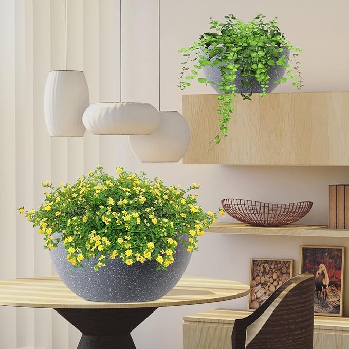 - 【Weather Resistant and Durable 】 Allow you to enjoy these hanging plant pots for outdoor plants in all types of weather. Built to withstand intense sun and harsh winter temperatures, they are free from fade, frost, crack and peel damage.