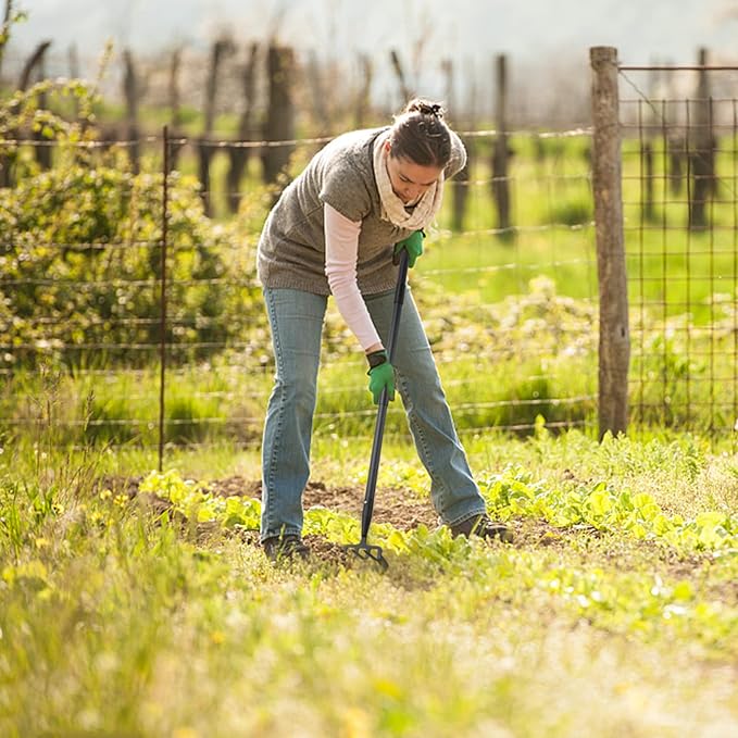 - Multiple-Practical Garden Tool: This hoe garden tools can meet most of our gardening needs. It can be a stirrup hoe for mowing the lawn and weeding, but also is a 4 tines rake for planting, loosening and transplanting.