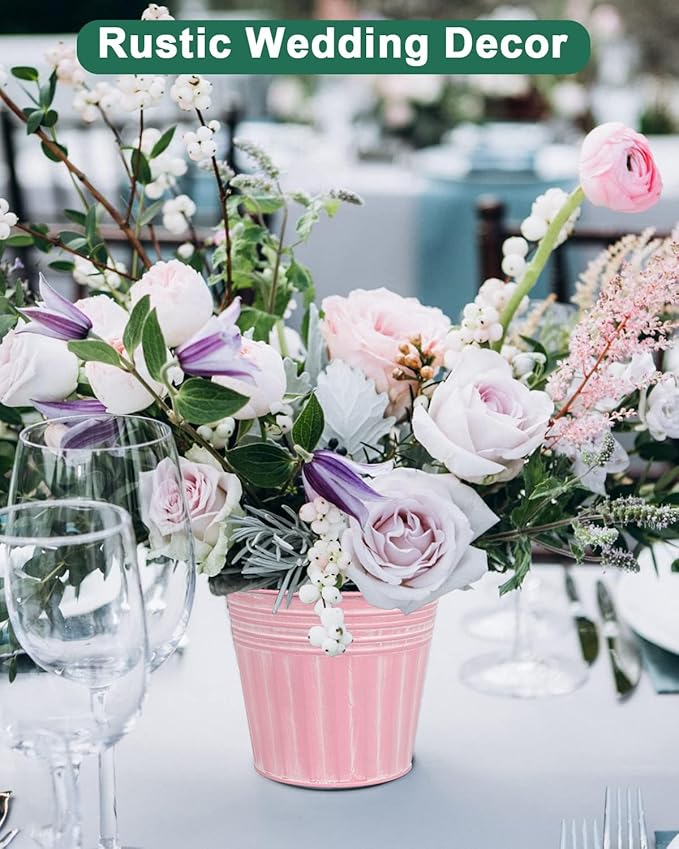 vensovo 6 Inch Pink Metal Rustic Flower Pots - 6Pcs Medium Galvanized Planters with Drainage Hole and Rubber Plug, Rustproof Metal Bucket Plant Pots Farmhouse Vintage Style for Decor