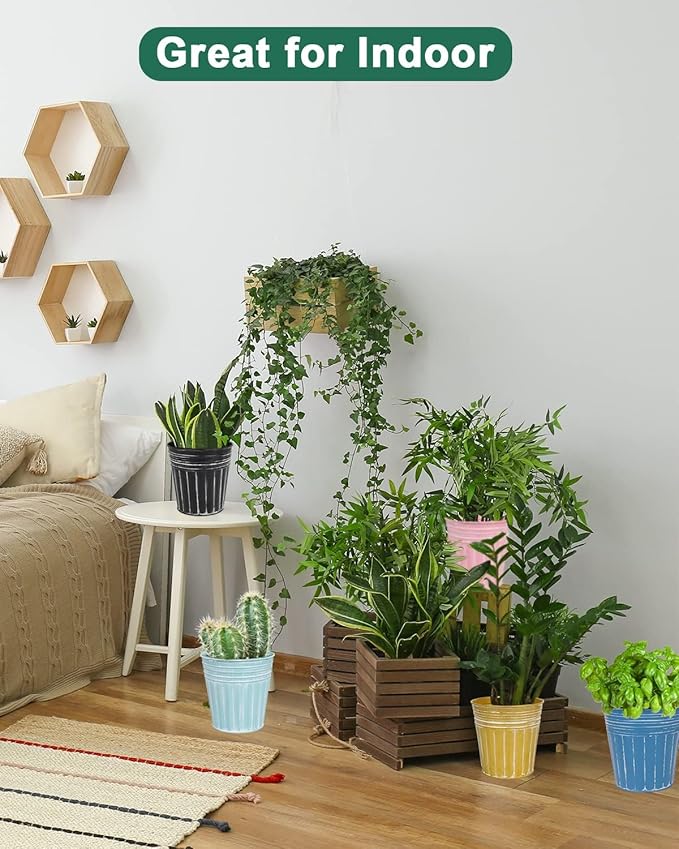 - 【Great for More Scenes】Metal bucket flower pot with rustic coating will not fade and crack, suits for outdoor & indoor, windowsill, living room, kitchen, balcony, garden and more. Used for succulents, herbs or other flowers. Rustic and vintage finish great for decorating your home or office, also used as a gift for landscape design lovers