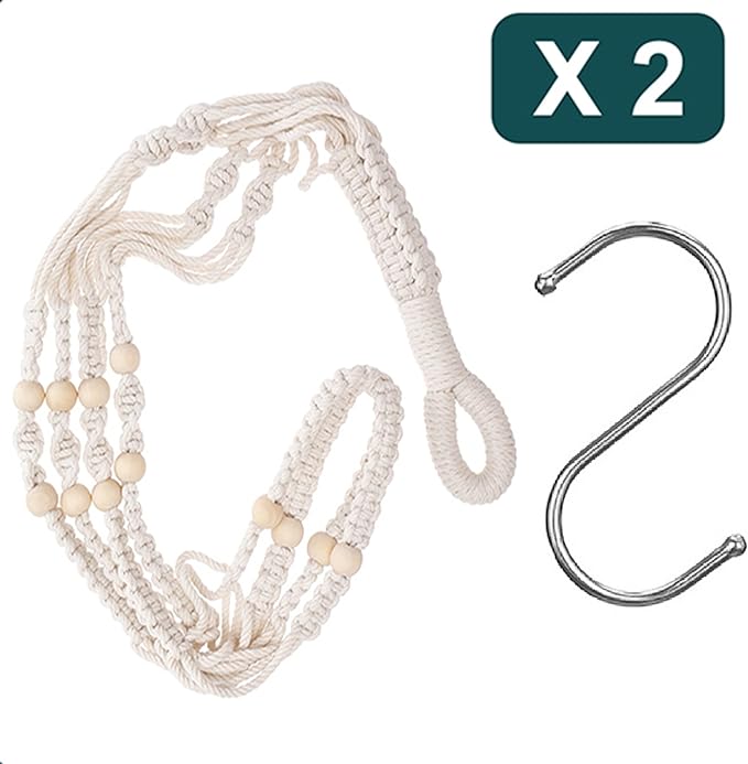 - 【WHAT YOU GET】2 hooks and 2 Ivory rope plant hanger with beads to bring variety to your boho décor, At 35 inches long,this plant holder is made using 100% Pure cotton cord it is perfect for planters up to 4-10 inches in diameter. perfect gift for gardening lovers. (No pot or plant included).