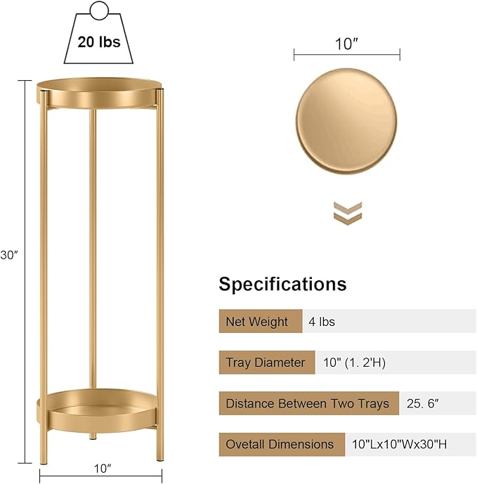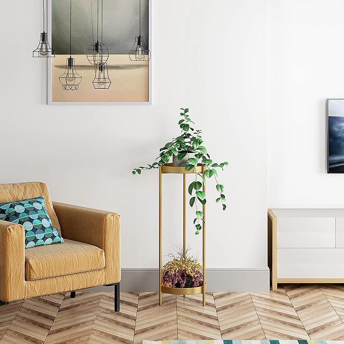 2 Tier Metal Flower Plants Holder with 2 Removable Display for Indoor or Outdoor,Pot Plant Planter Display (Gold 2P)