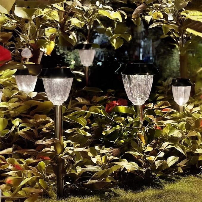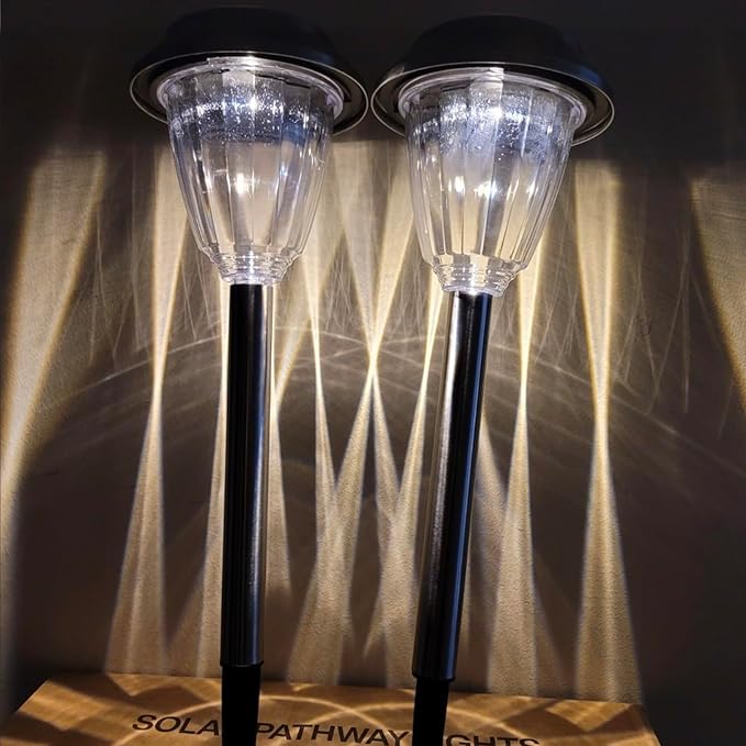 - Solar Pathway Lights: 12 pack with high transmittance shade can better project attractive patterns, adding bright warm white light to your garden and creating a pleasant nighttime atmosphere