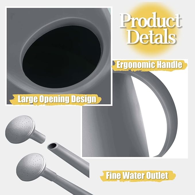 - Customizable Water Flow: Watering can with a detachable shower nozzle, easily switch between a steady stream or gentle shower to suit your plant's watering needs. Great for both indoor and outdoor plants