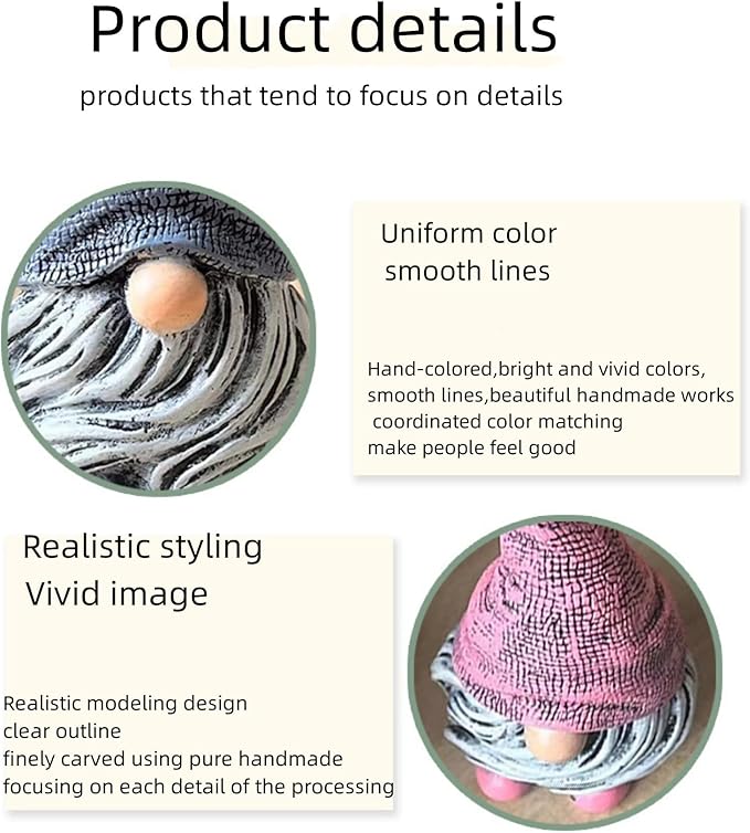 - Mini garden gnome kit:The mini gnomes figurines kits set is made of quality polyresin, waterproof, rust-proof. Each one is hand-crafted with well details. It looks cute, funny and vivid.