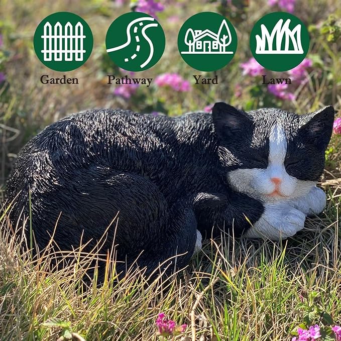 - Furry Feline with Realistic Color: Sculpted with realistic fur from pointed ears to paws with kitty claws, our black/white cat lawn statue is so adorable in addition to your yard or garden. It is a good ornamental choice for your lawn, patio or garden