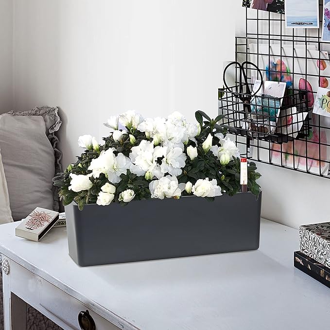 GardenBasix Elongated Self Watering Planter Pots Window Box 5.5 x 16 inch Indoor Home Garden Modern Decorative Planter Pot for All House Plants Flowers Herbs (Dark Grey,1-Pack)