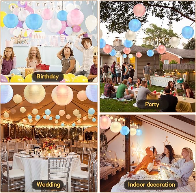 - Perfect Decoration for Any Event: Add decorative Hanging Colorful Lanterns, your family and friends feel more joy and cheerful ambiance of the weddings, birthdays and other celebration. Also perfect for outdoor decoration, like courtyard, summer garden party and other theme party.