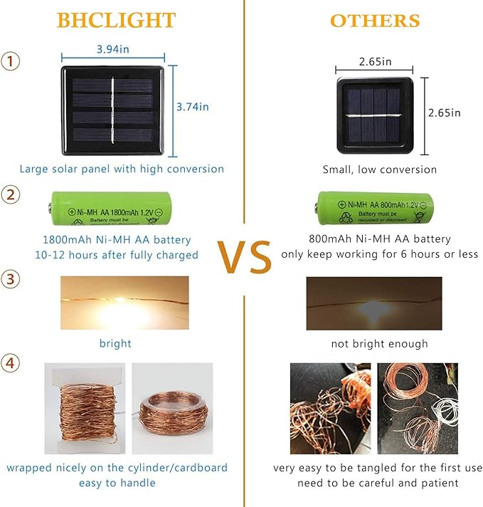 - [Upgraded 2 Pack Super Bright Solar Halloween Lights]: Cute shaped, powerful 1800mAh capacity battery, Super Bright Total 200 LED 80FT, Upgraded Larger LED Beads, IP65 Waterproof Performance. Durable Flexible Copper Wire, Quick Charging Technology. The vibrant orange glow makes these lights perfect for creating a spooky Halloween atmosphere.