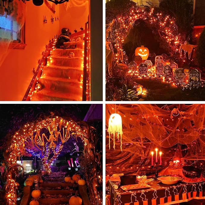 - [Widely Used Solar Fairy Lights Outdoor]: Perfect for Halloween home decor, party decorations, and outdoor lighting for gardens, fences, porches, patios, trees, rooftops, and more. These orange solar string lights bring a festive and spooky glow to both indoor and outdoor spaces.