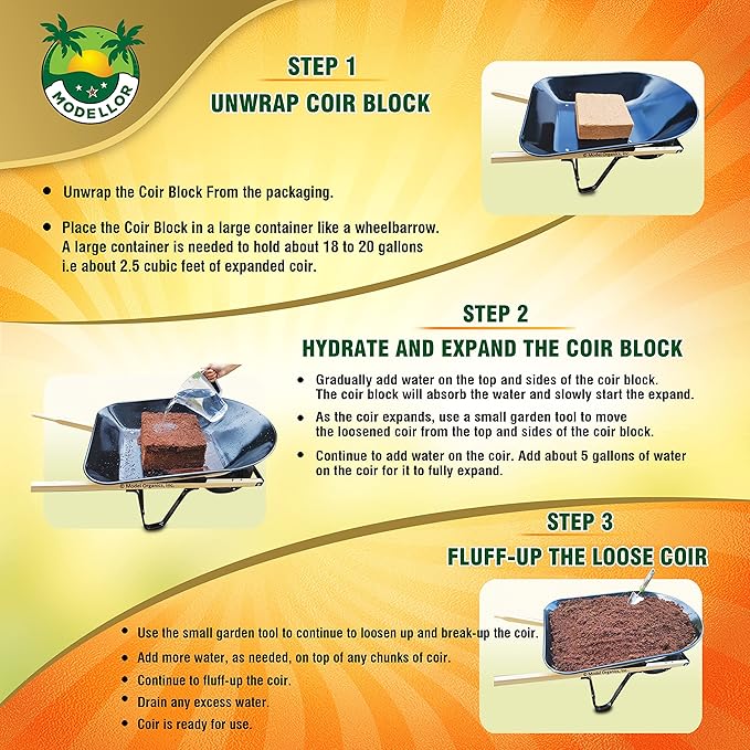 - LOVE YOUR MODELLOR PREMIUM COIR – STORE EXTRA AWAY! - Coir brick will make 18 to 20 gallons of loose fluffy coir. Don’t need so much, use only a portion of the coir block that you need and store the extra away for later use. Coir is dehydrated and compressed to help storage.