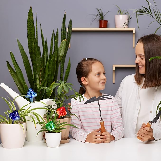 - Simple to Use: the plant watering bulbs are easy and convenient for you to use, simply fill the mushroom watering globes with water, then press the bottom stakes into the soil, and they will automatically water your plants; If you want the watering globes to leak more slowly, insert them deeper into the soil