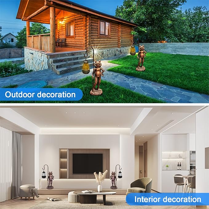 - Unique design - Unique statue is standing frog with solar lamp. Our solar Lantern Frog uses a bronze appearance, which is very much in line with the artistic beauty of the design.
