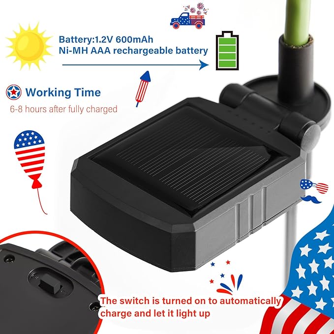 - Solar Power Supply: the grave decorations for cemetery are turned off by default during the day and automatically turns on the LED at night; The battery has 600mAh large capacity, can work continuously for 8-10 hours, and it takes 6 hours to fully charge