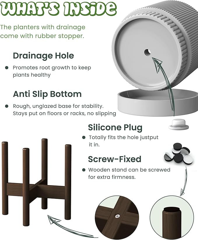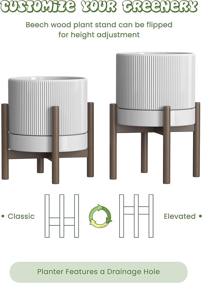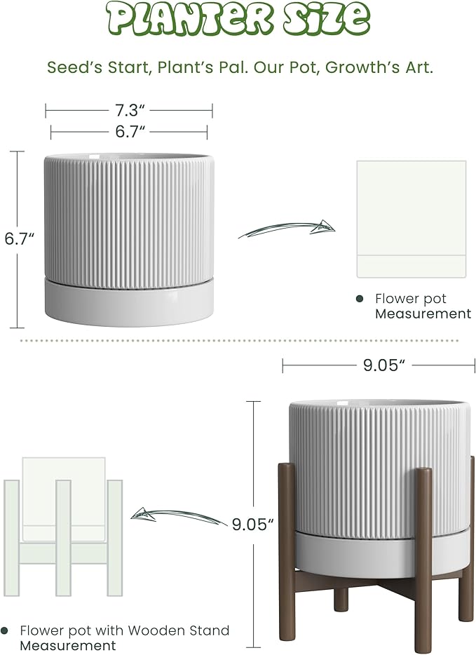 Ceramic Planter Pots Indoor with Drainage Hole & Saucer,Including Stand,7.3 Inch Mid-Century Modern Cylinder Plant Pot for Snake Flower Leaf