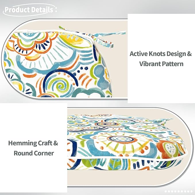 - Multiple Applications: Whether you're lounging or enjoying on your patio/balcony/garden/dining room, vibrant patterns can be adapted to your indoor and outdoor decor to add a vivid atmosphere. Attached ties keep the outdoor cushions securely in place, preventing unwanted sliding or movement while you sit.