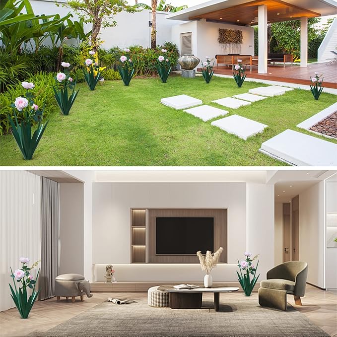 - Both stem and leaves are supported by wire for superior flexibility and durability. These flower bed decorations will bring you outdoor decorating solutions with solar garden lights. Suitable for planting near trees, flower beds, fences, cemeteries, graves and walkways.