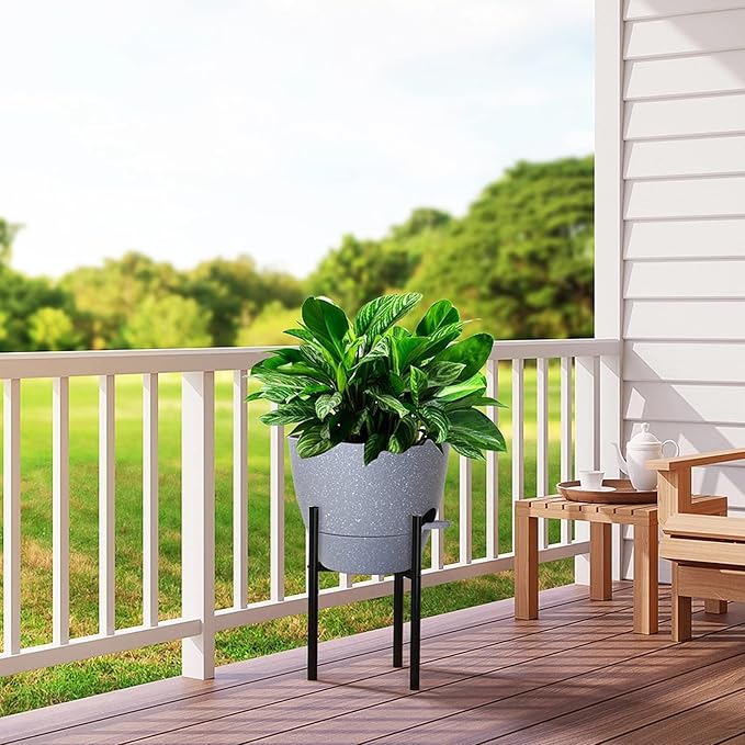 - [2IN1 SELF WATERING POTS] The planters has a removable watering feeder. You can watering from bottom directly or watering from the top, the excess water will drip into the bottom reservoir. It prevents root rot, making sure your plants don't sit in water and have enough air to circulate in the soil. The bottom of the 60oz large reservoir provides optimal moisture for your plants.