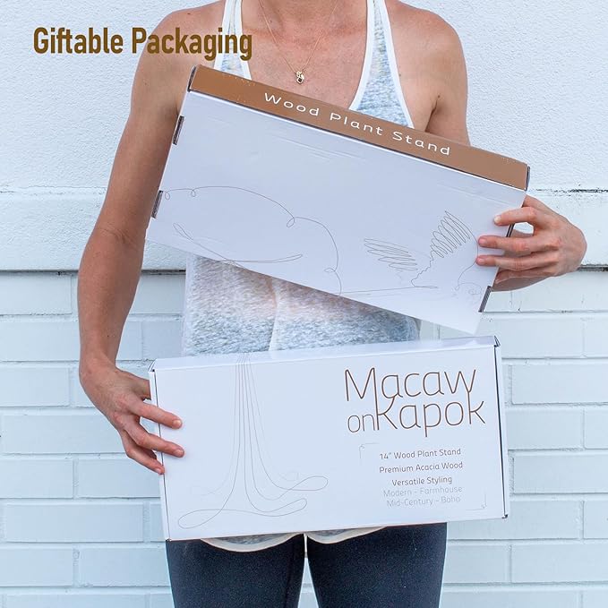 Macaw on Kapok Wood Plant Stand,Fits 8 10 12 to 14 inch Plant Pot,Acacia Solid Wood,Planter Stands for Indoor Plants,Outdoor Planter Large,Modern Plant Holder,Mid Century Plant Stand,Flower Pot Stand
