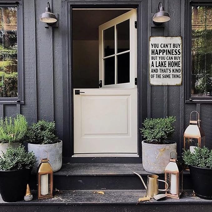 - WIDE RANGE OF APPLICATIOM: These fishing cabin lake house tin signs are not really rusty.(You Can'T Buy Happiness But You Can Buy A Lake Home) It is a fun and attractive decoration for your House, Home, Room, Lake house, Bar, Boat or Club.